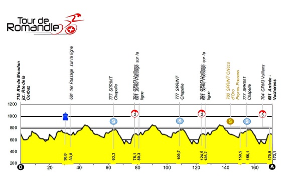 Le jeudi 30 avril, lors de la 2ème étape Rue - Vucherens 173,1km (en boucle), le Tour de Romandie passera trois fois de suite à Corcelles-Le-Jorat